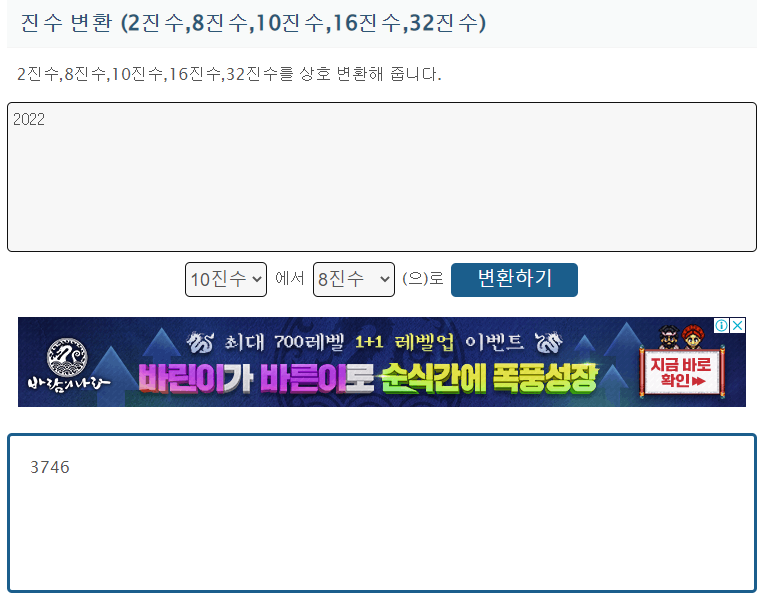 2022를 8진수로 변환하면 3746이 맞네요.