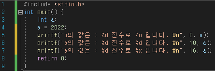 이렇게 변수 선언에서 정수형, 8진수, 10진수, 16진수로 출력하는 프로그램을 확인했습니다.