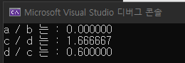 printf("d / c 는 : %f \n", d / c); // 결과 0.60000