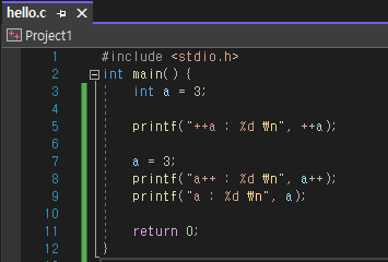 printf("a++ : %d \n", a++); // 결과는 3