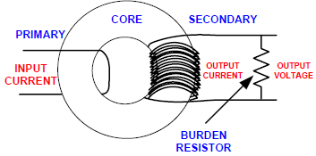 하기의 그림과 같이 변압기의 원리를 이용하여 1차측에 흐르는 전류를 변압기의 권선비 만큼 2차측 전류로 바꾸고, 2차측의 저항을 연결하여 2차측 전류를 전압 신호로 바꾸어 측정하는 방식입니다.