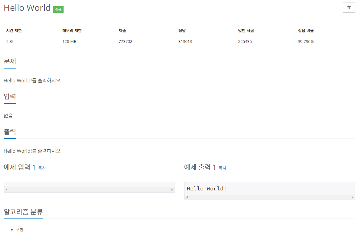 - 문제 : Hello World!를 출력하시오.