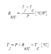 열저항(Thermal Resistance)은 와트당(W) 발생하는 온도의 변화로 정의합니다. P(전력)만큼의 열이 열원에서 발생할 때, 열원의 온도(정션온도) Tj는 전도체를 따라 전도되면서, Tc의 온도로 변화합니다.