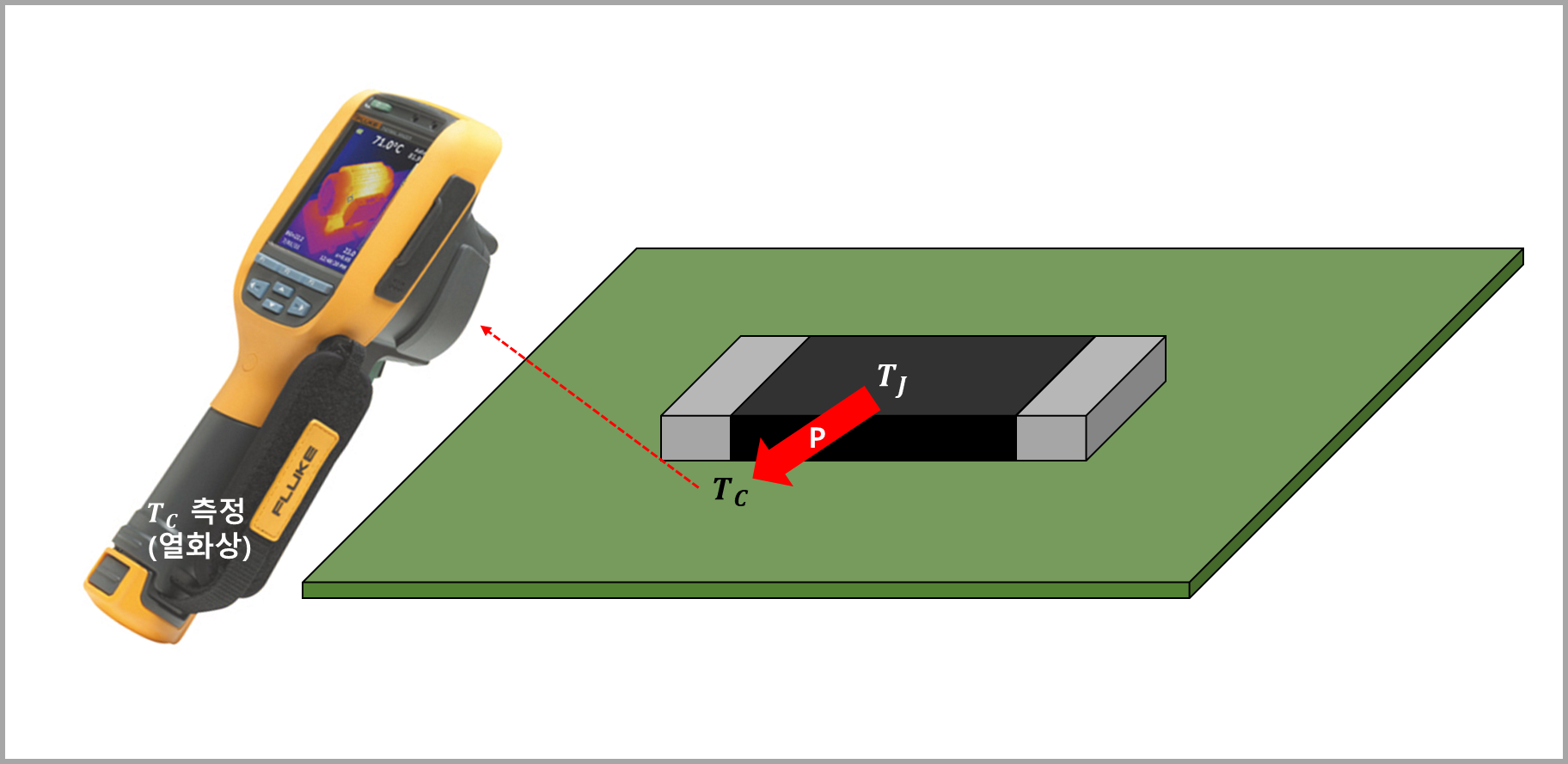 예시) 전력소비 = 10W, 열저항 = 5˚C/W, 측정 온도 = 60˚C